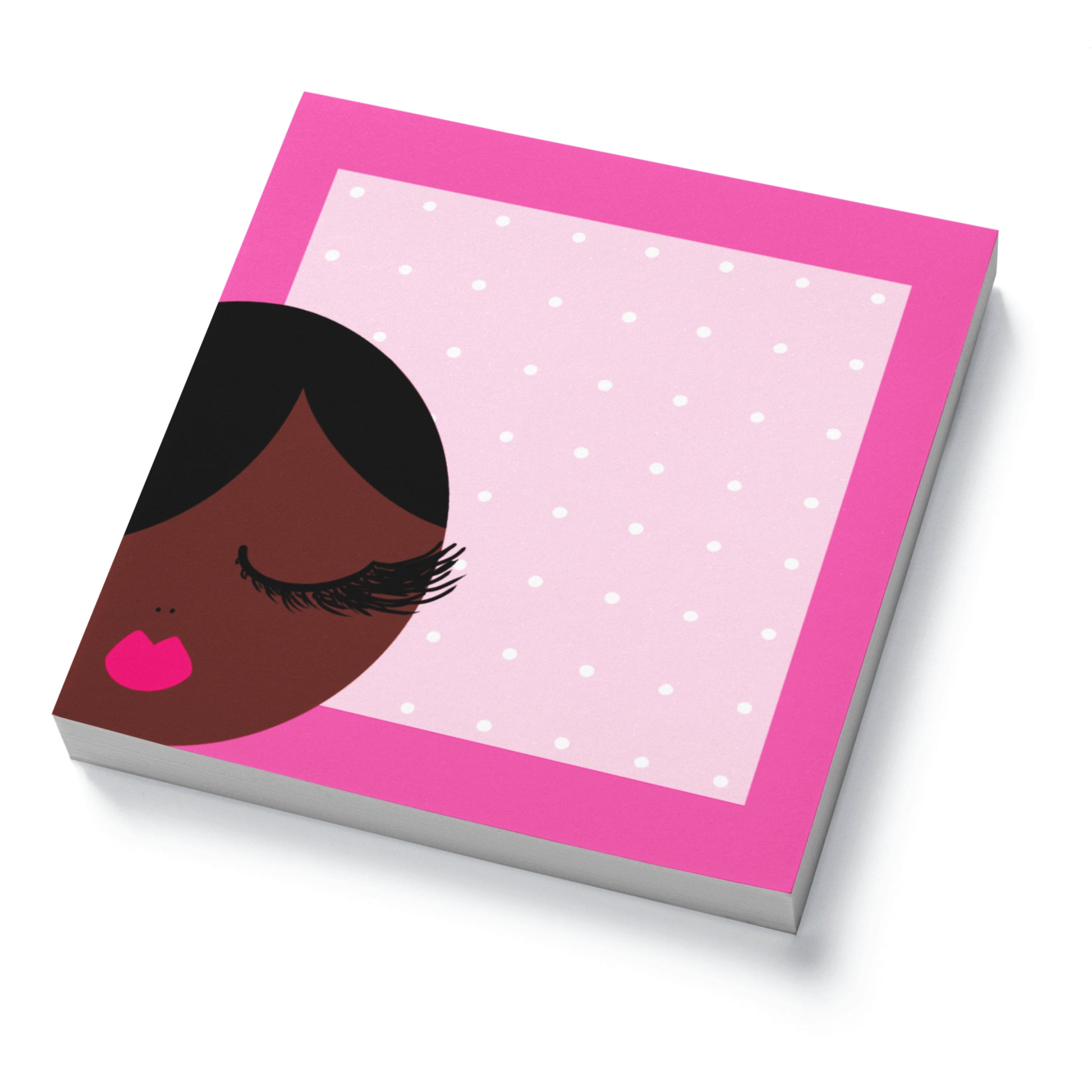 Add a pop of personality to your notes with these beautiful Arleen sticky notes! Featuring Arleen who has long, fluffy lashes, pecan brown skin, and vibrant hot pink lips—this design is framed by a bold hot pink border. The bubble gum pink background with playful white polka dots makes it fun and functional for jotting down reminders, ideas, or little messages.