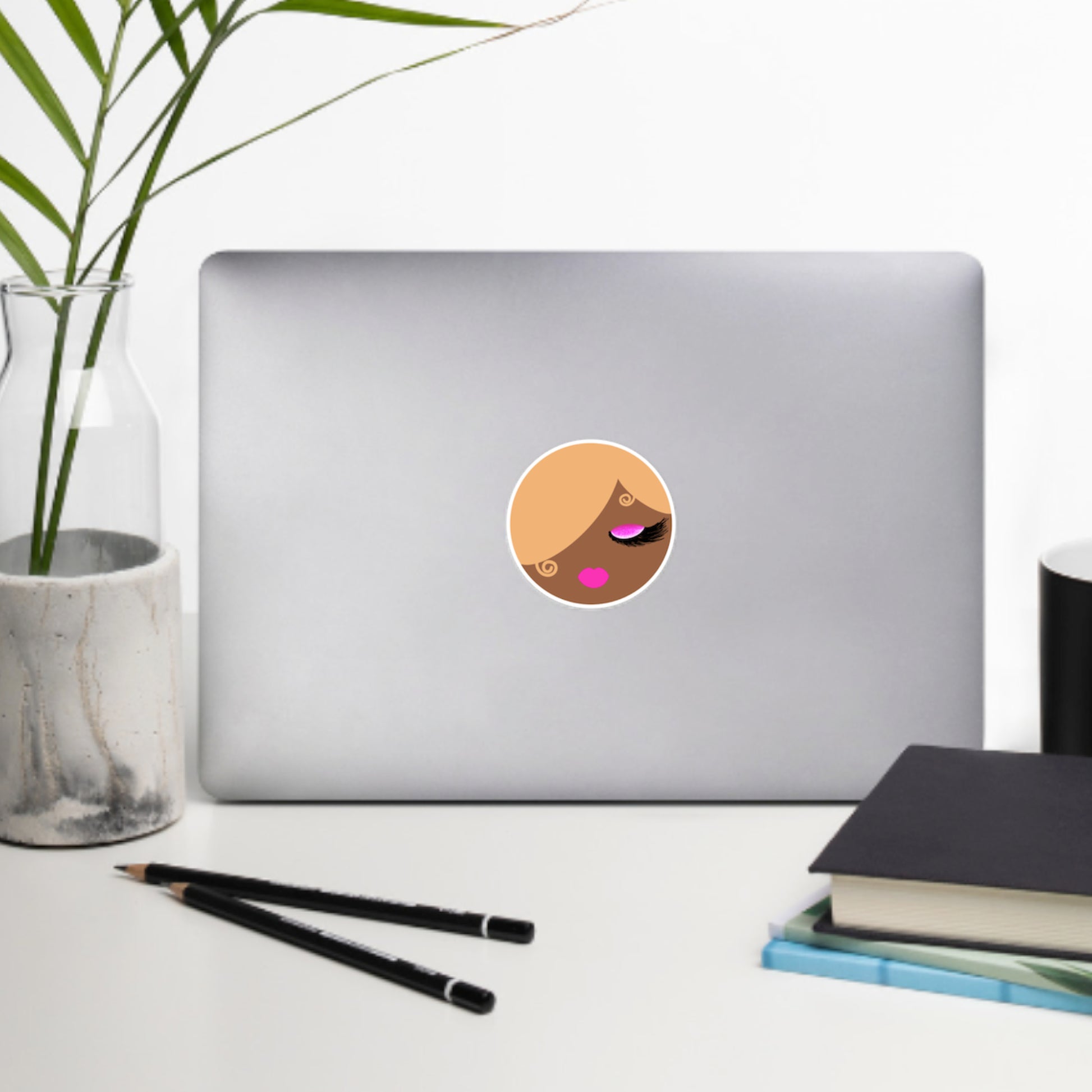 Introducing Cocoa! She’s rockin' blonde curls, pink eyeshadow, and white eyeliner that beautifully complements her cocoa skin. This vibrant sticker adds a touch of style and personality to any item you choose.