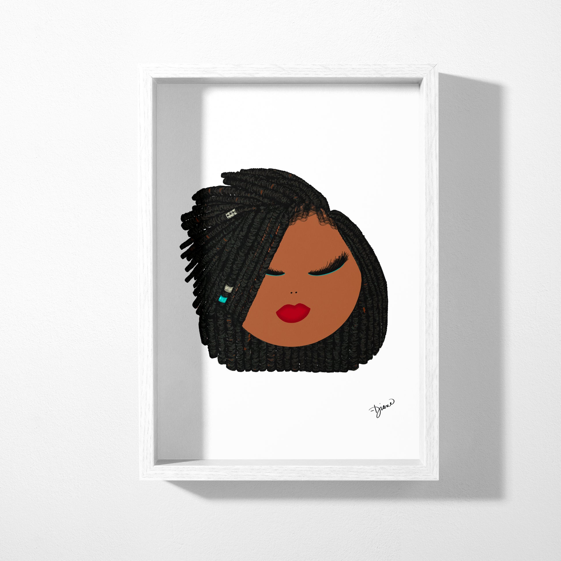 Dee has lustrous black locs adorned by shimmering silver and soft turquoise hair jewelry, Dee is an embodiment of elegance and style. Her striking red lipstick and turquoise eyeliner enhance her beauty, creating a beautiful look.