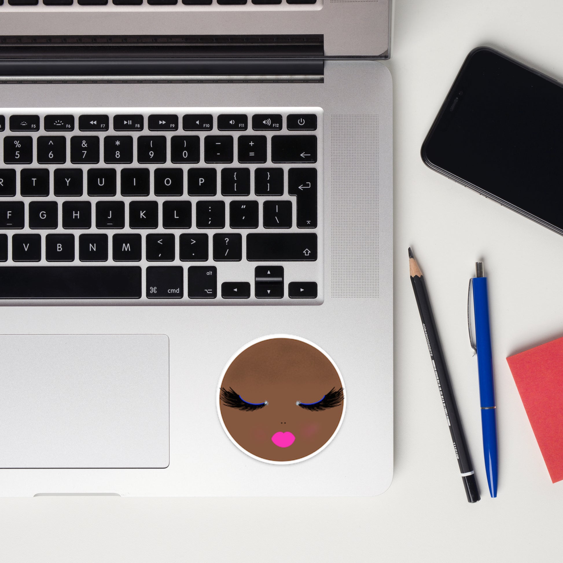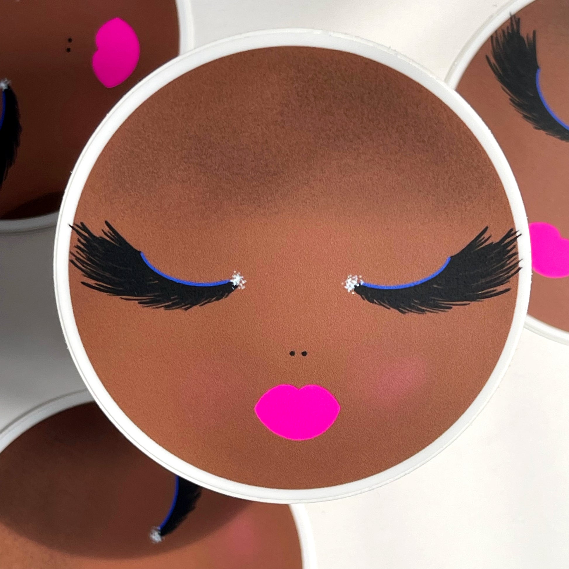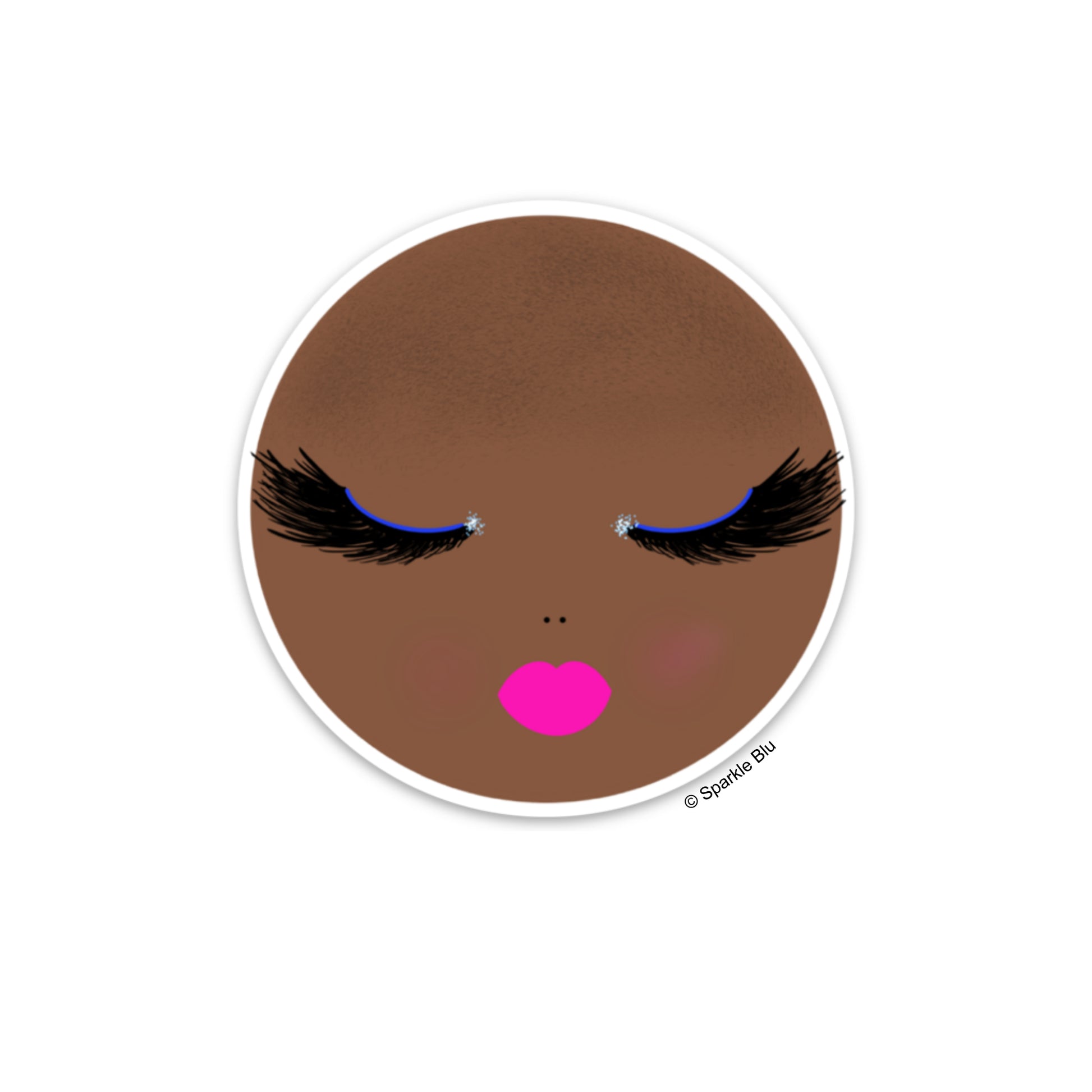 Introducing Faith! She's sports electric blue eyeliner with inner eye glitter eyeshadow, pink lipstick, and soft rosy cheeks which compliments her beautiful cocoa skin. Look closely, and you'll see she has short stubbles on her head.