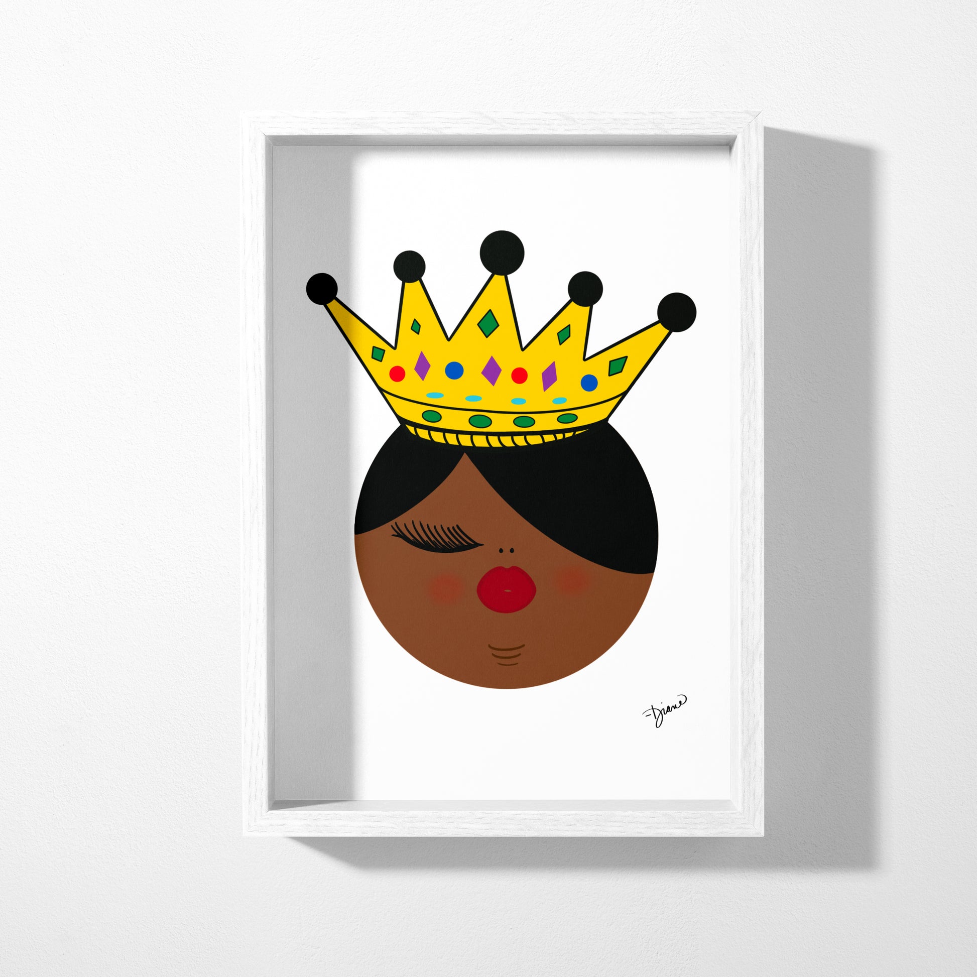 Be the queen you are with the Fluffy Queen Falana Art Print. This stunning piece features the magnificent Fluffy Queen Falana, crowned with a jeweled crown, with crimson lips, full lashes, and gorgeous black hair. Her curvy and confident presence is here to remind you that you are a queen. Hang this beautiful art print in your space as a daily affirmation of your own majesty.