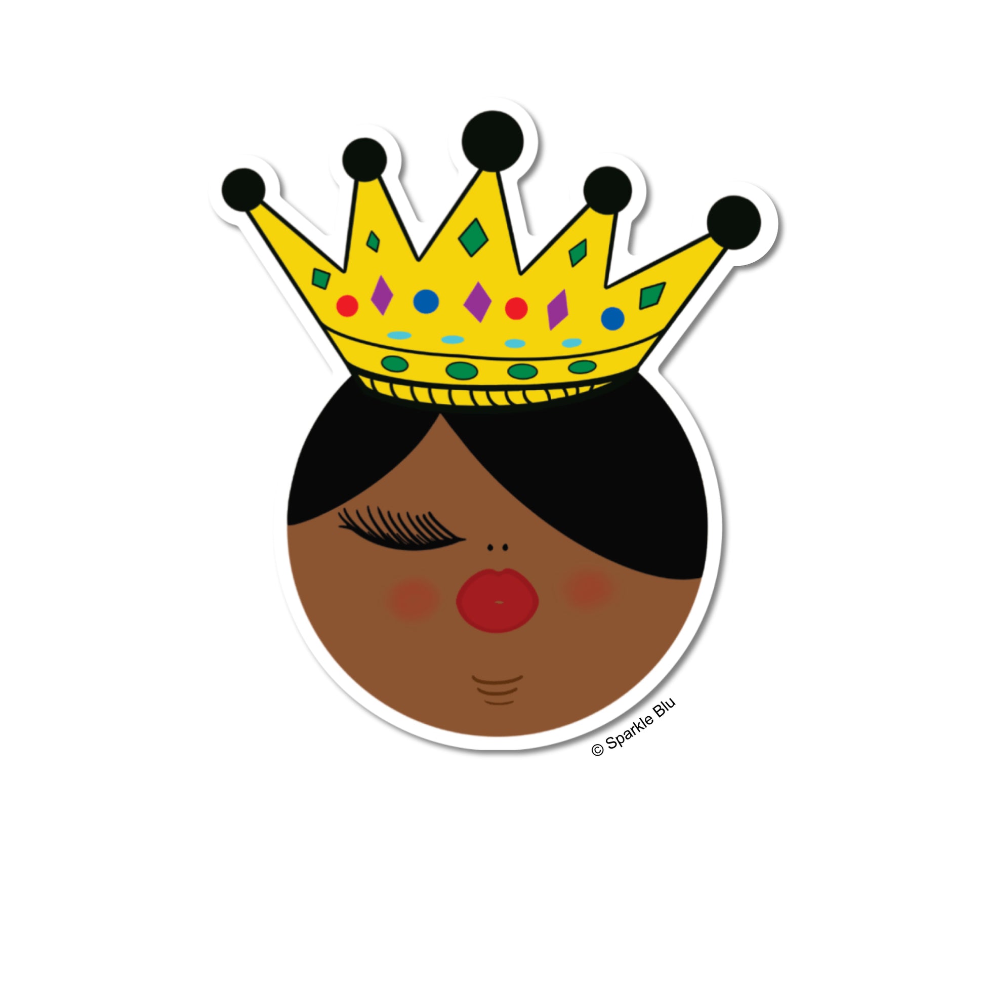 The QUEEN is here! This stunning sticker features Fluffy Queen Falana with crimson lips, full lashes, and black hair adorned with a jeweled crown. She is curvy, confident, and ready to reign wherever you choose to place her.