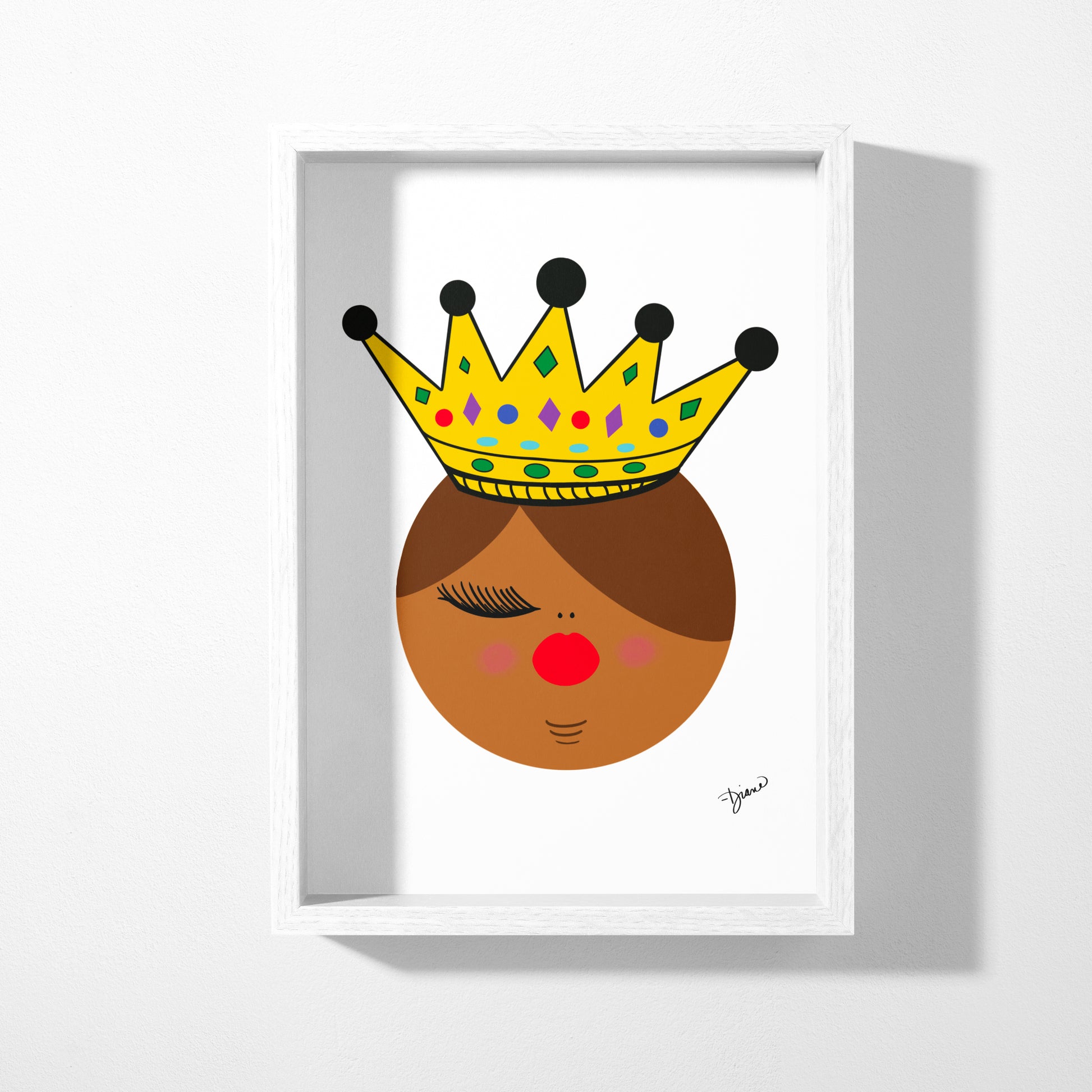 Be the queen you are with the Fluffy Queen Falecia Art Print. This stunning piece features the magnificent Fluffy Queen Falecia, crowned with a jeweled crown, with orange lips, full lashes, and gorgeous brown hair. Her curvy and confident presence is here to remind you that you are a queen. Hang this beautiful art print in your space as a daily affirmation of your own majesty.