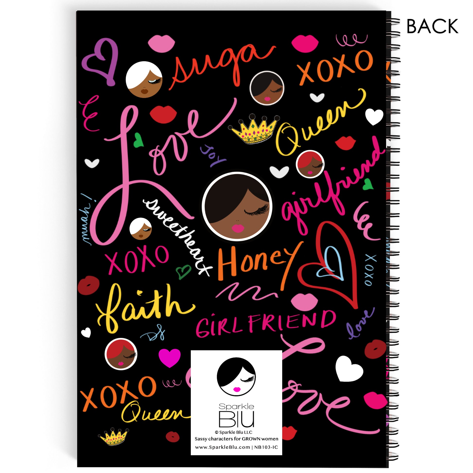 Make your mark with this bold 8.5" x 11" notebook featuring our signature best selling expressive all-over graffiti print. A mix of love, symbols, and sass, this glossy beauty makes every note, meeting, and brainstorm a little more fun.