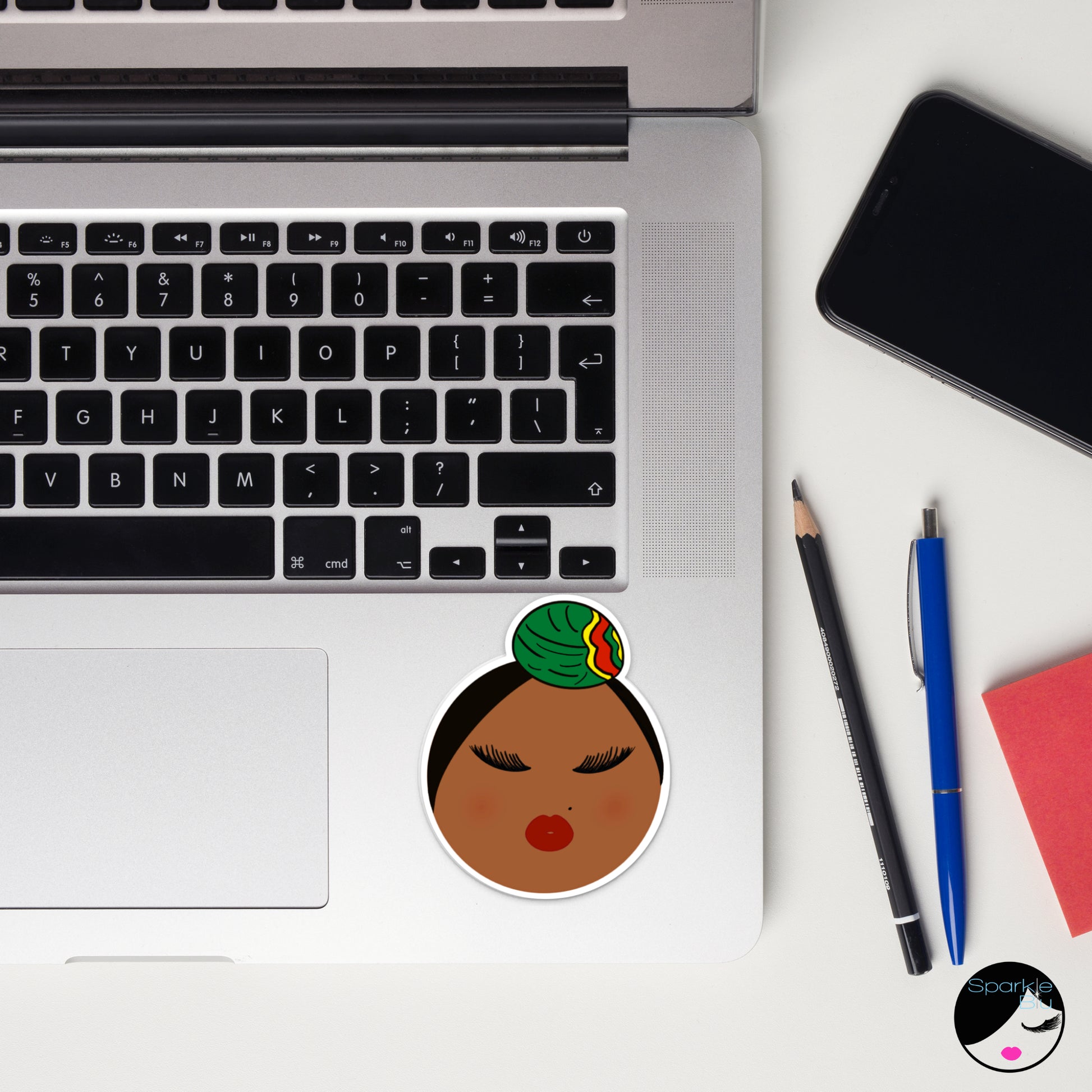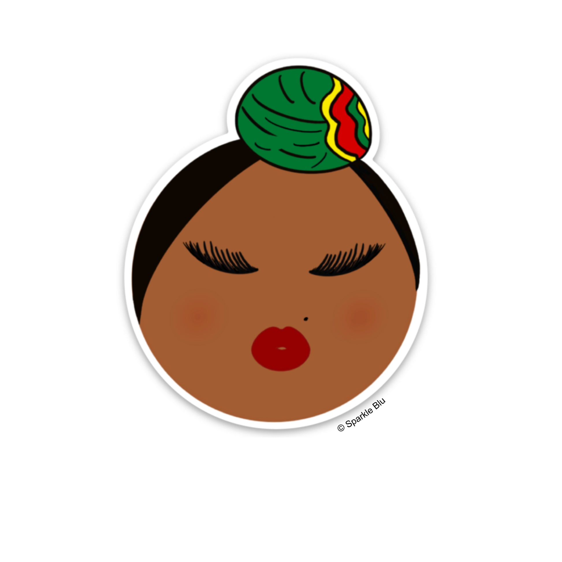 Ivy is our island girl hailed from Jamaica! She is decorated with a head wrap, flushed cheeks, beauty mark, fluffy lashes, and deep red lips. She will surely dress up any laptop, water-bottle, planner, and more! This sticker is perfect for all the women who love to wear head scarfs.