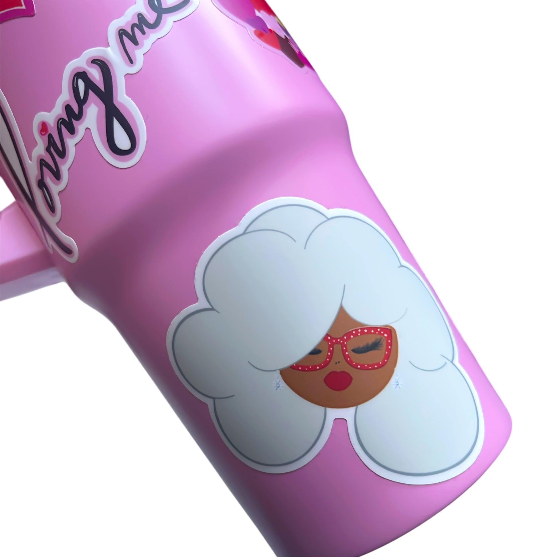 Meet Lisa, a standout in the Rich Aunties Collection. With her big, fluffy gray hair and oversized red glasses dotted with white polka dots, Lisa brings bold personality and flair. Her look is finished with fluttery lashes, deep red lipstick, and sparkling diamond drop earrings for that extra touch of bling. She’s fun, stylish, and unapologetically fabulous...just like a true Rich Auntie.