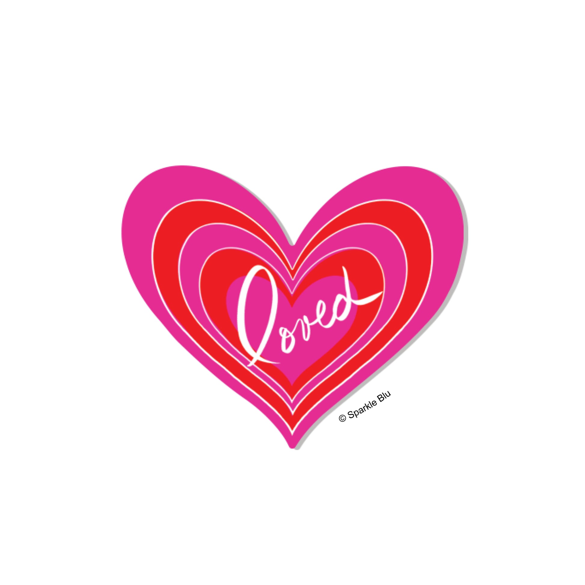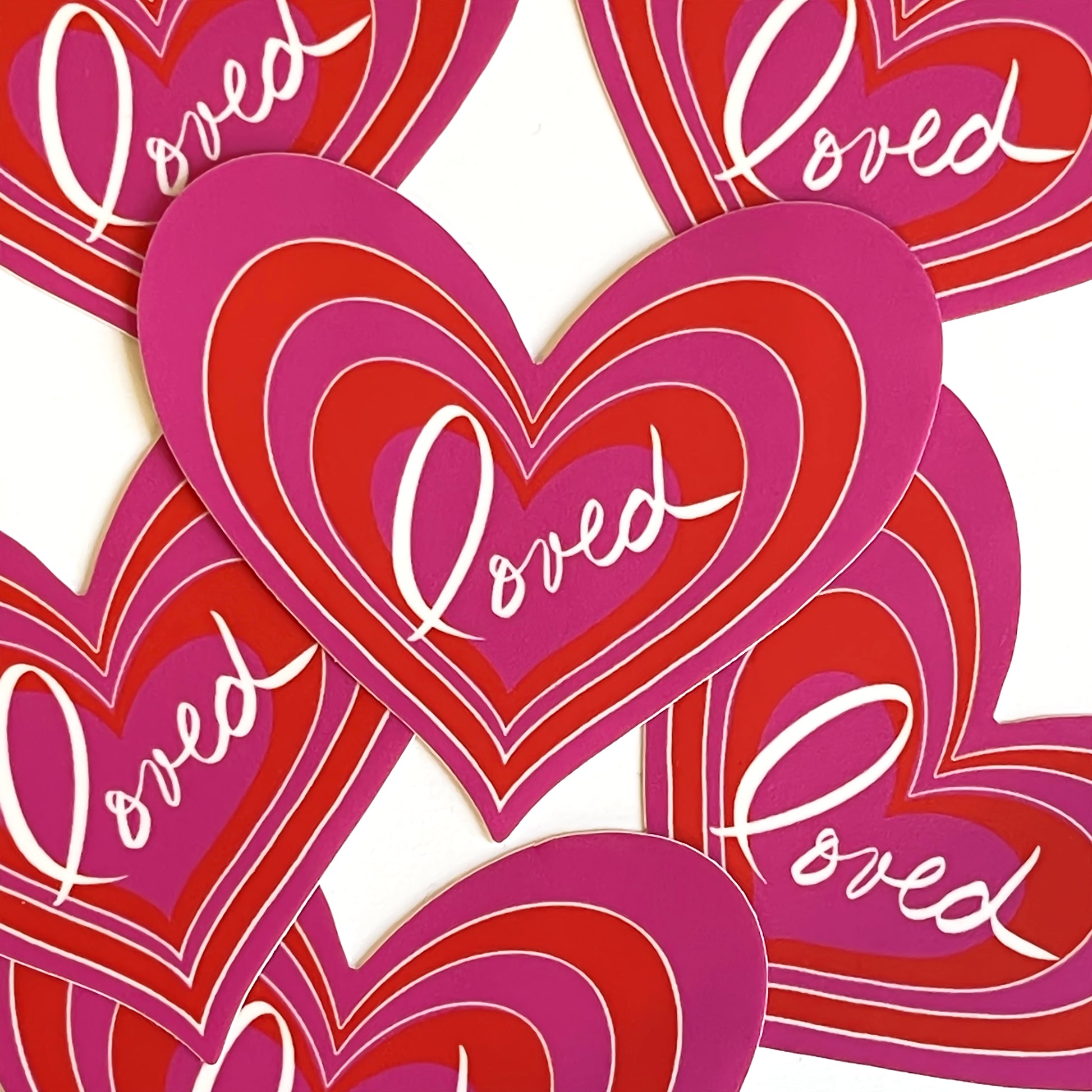 Brighten someone’s day (or your own!) with the 'Loved' sticker. Featuring fuchsia and red hearts nestled within each other and the heartfelt script message 'loved,' this design serves as a beautiful reminder that you are loved. Perfectly paired with the 'Loved' greeting card or on its own, this sticker is a simple yet powerful way to let someone know they are truly loved.