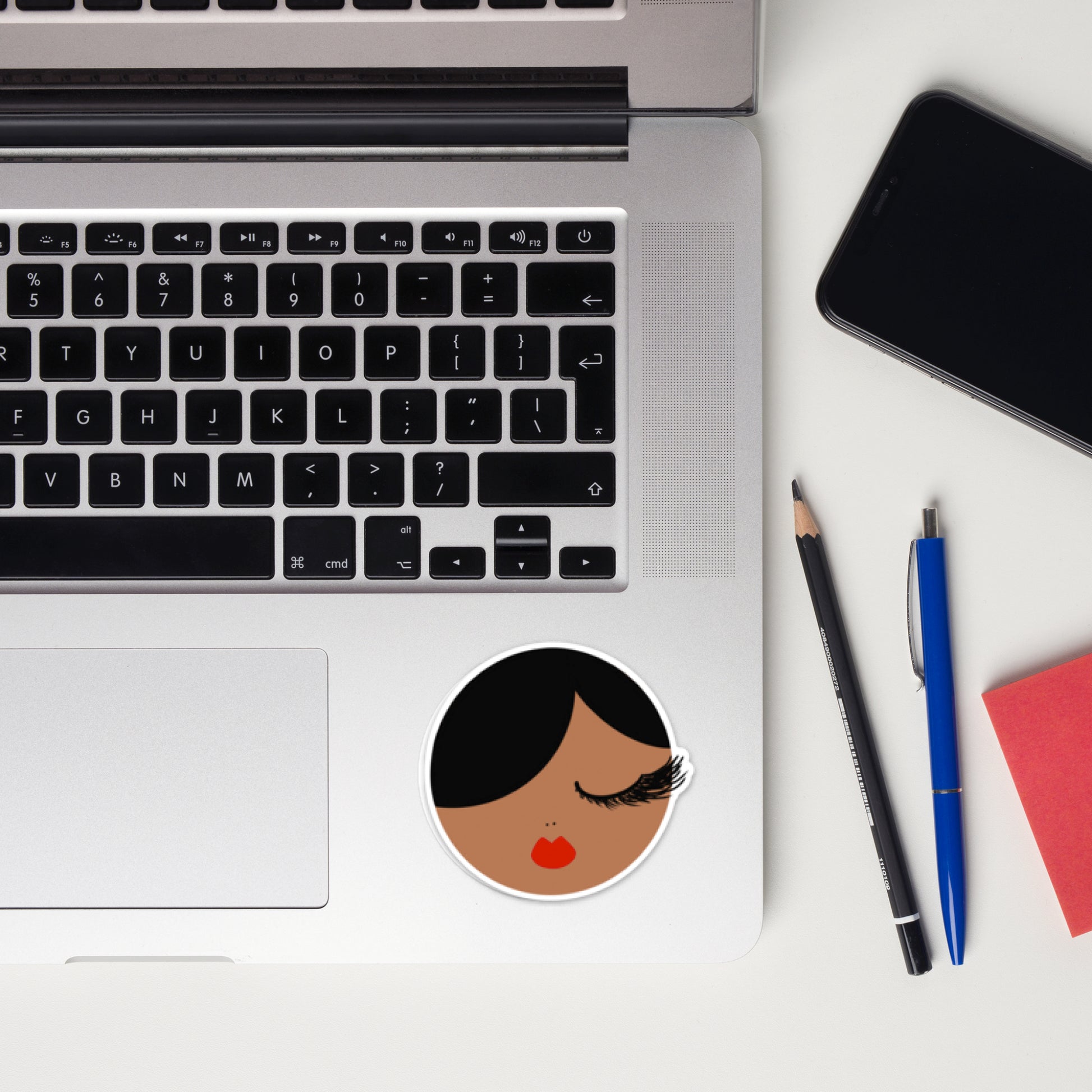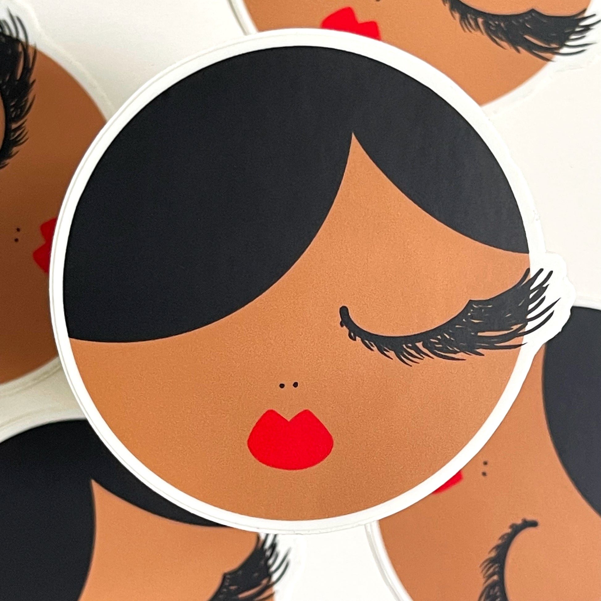 Classic elegance comes with Marshalene! Featuring long, fluffy black lashes, rich coconut brown skin, and sleek black hair, her timeless red lips complete her sophisticated look. This stylish sticker adds sass to your laptop, water bottle, notebook, or phone case.
