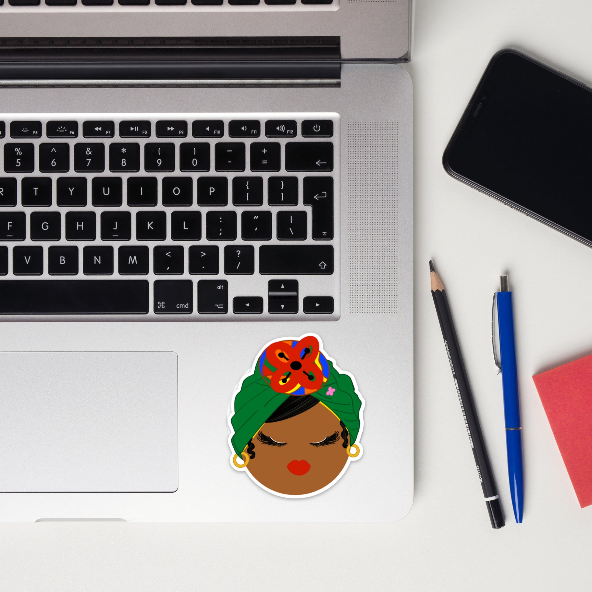 This GORGEOUS sticker design was inspired by the iconic, gifted, and beautiful Maya Angelou. The red flower adorning her crown is an African symbol of abundance. It's the perfect decoration for your laptop, luggage, or water tumbler.