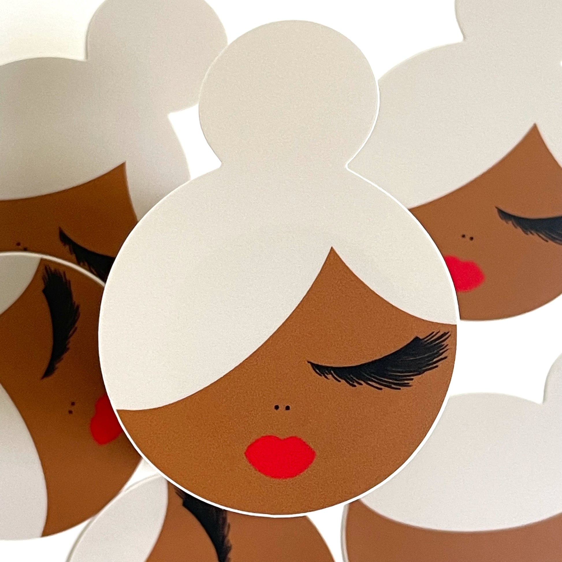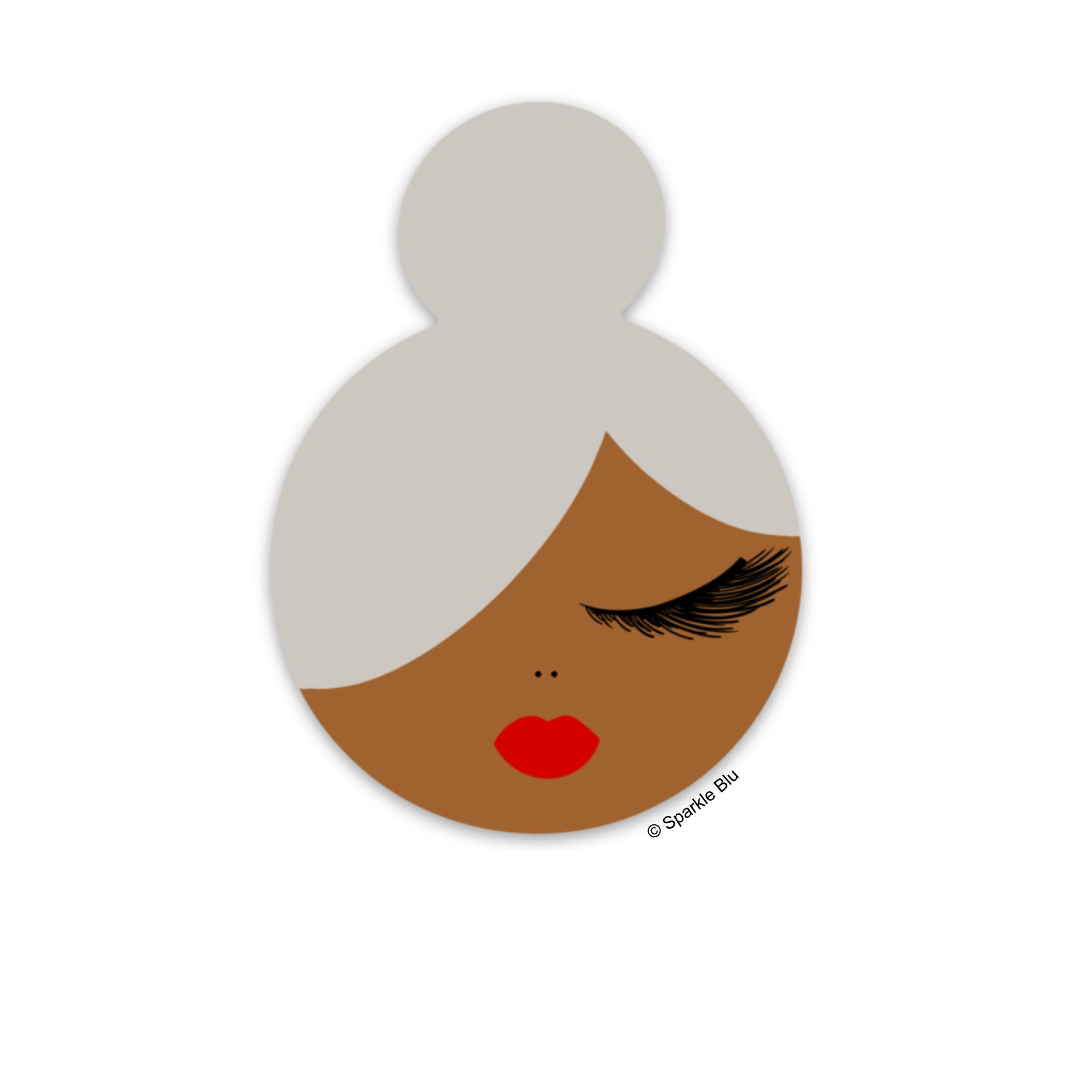 Meet Seasoned, with her caramel skin, alluringly long lashes, coral orange lips, and elegantly cool gray hair tied in a chic bun. This stylish sticker adds elegance and grace to your laptop, water bottle, planner, or any surface. Her name, Seasoned, reflects her life experience, symbolized by her beautiful gray hair.