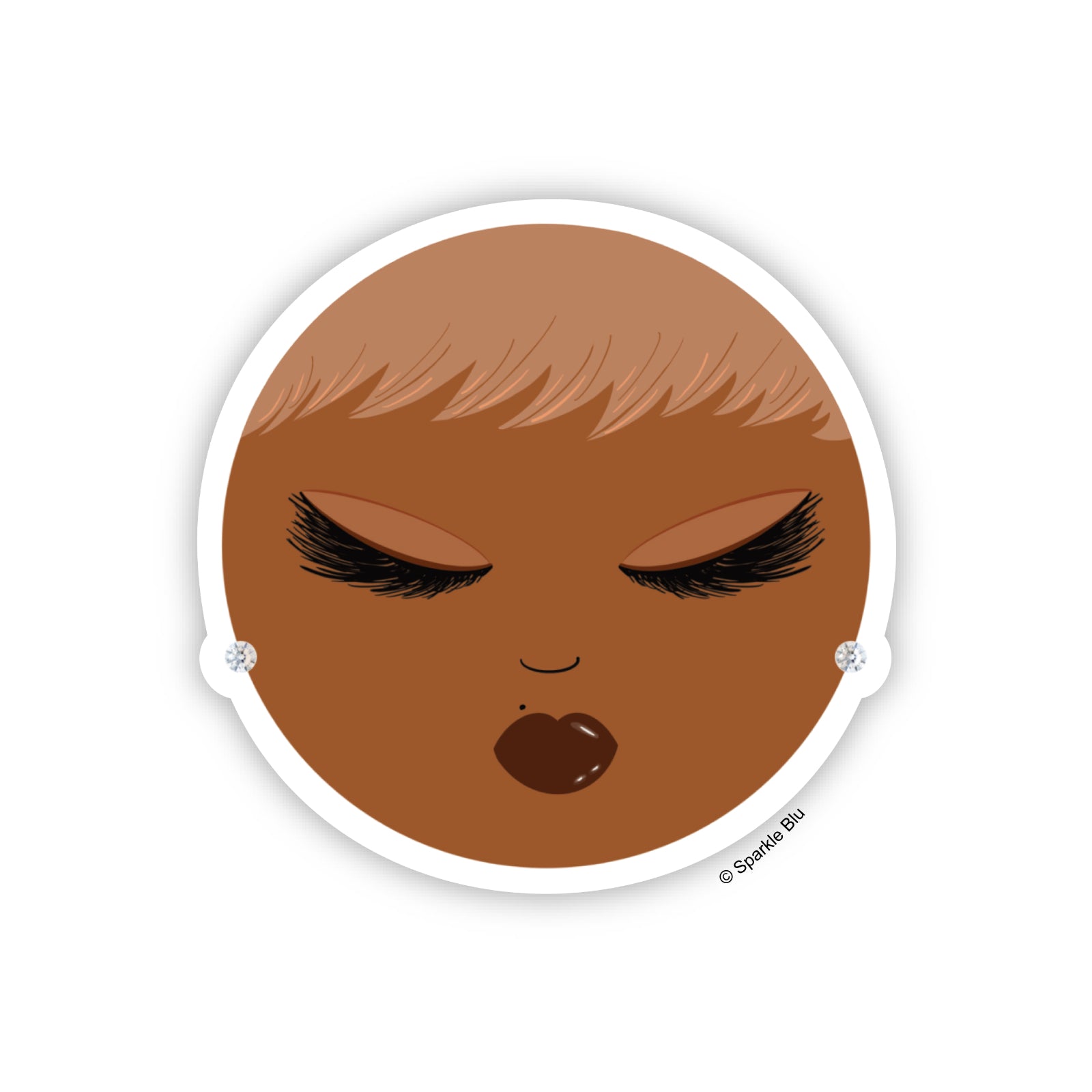 Stephanie keeps it sleek in this sticker, showing off her golden honey blonde pixie cut, mole above her lip, diamond studs, deep brown lipstick, nude eyeshadow, and lush lashes. A perfect accent for notebooks, planners, or your favorite tumbler.