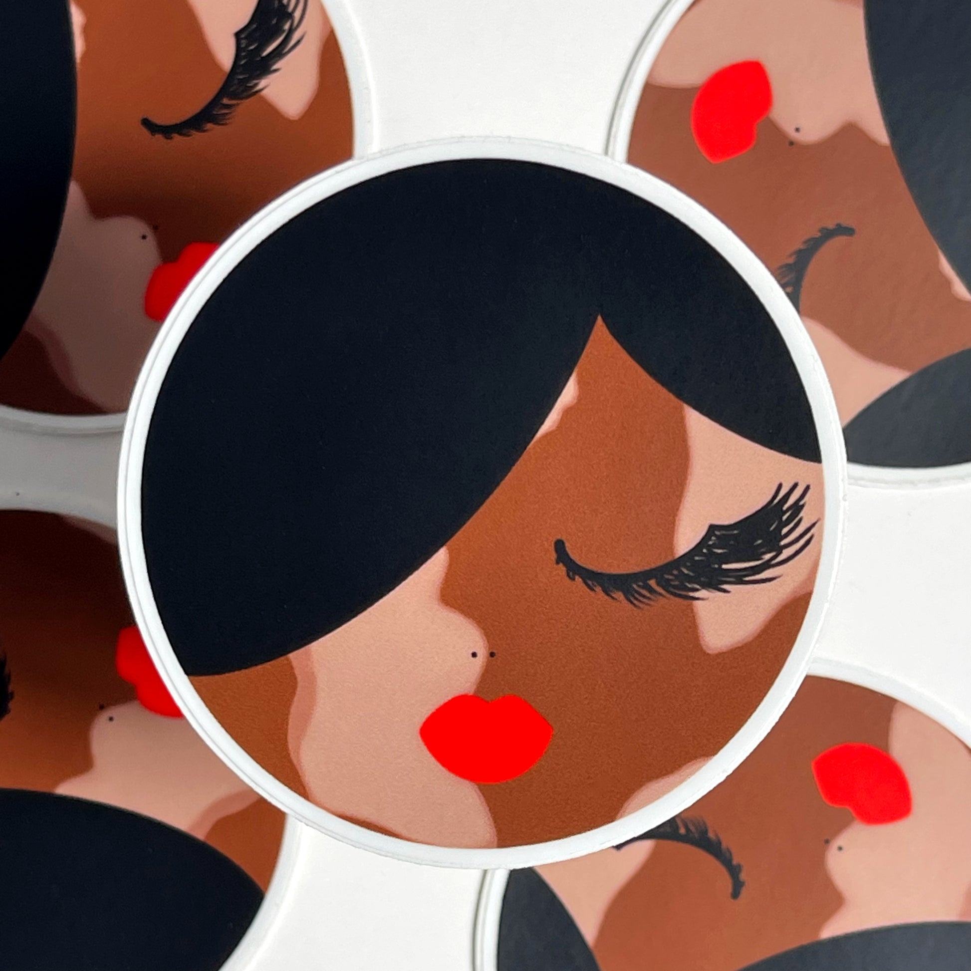 Isn't she lovely, isn't she wonderful! This striking sticker showcases the gorgeous Vanity, embracing her vitiligo with pride. With her beautiful black hair and vibrant orange lips, Vanity is a symbol of uniqueness and representation, making this sticker a meaningful addition to your laptop, journal, water bottle, or any personal item.